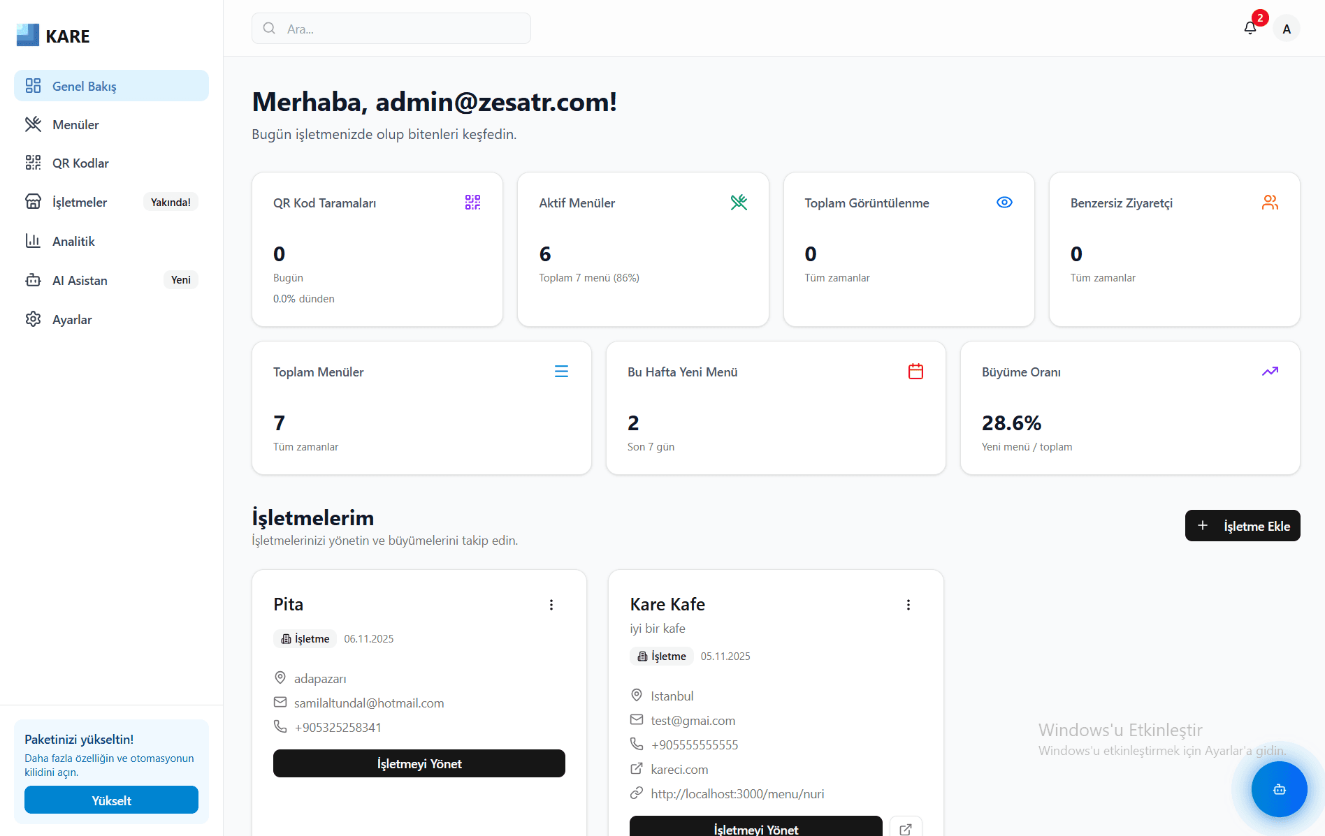 - Website + QR Menü + 3D Önizleme (opsiyonel)